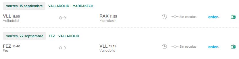 Salida desde el aeropuerto de Valladolid el 15 Septiembre 2026