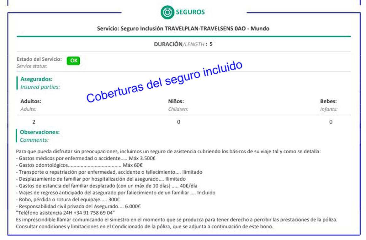 * Seguro de viaje incluido ( La cancelación no está incluida, ver coberturas al final de esta página )